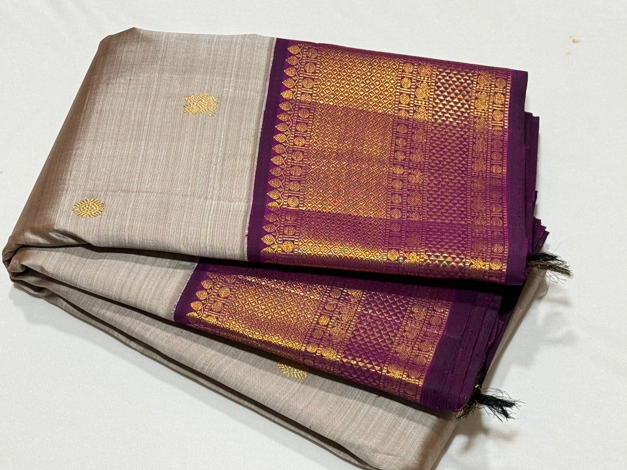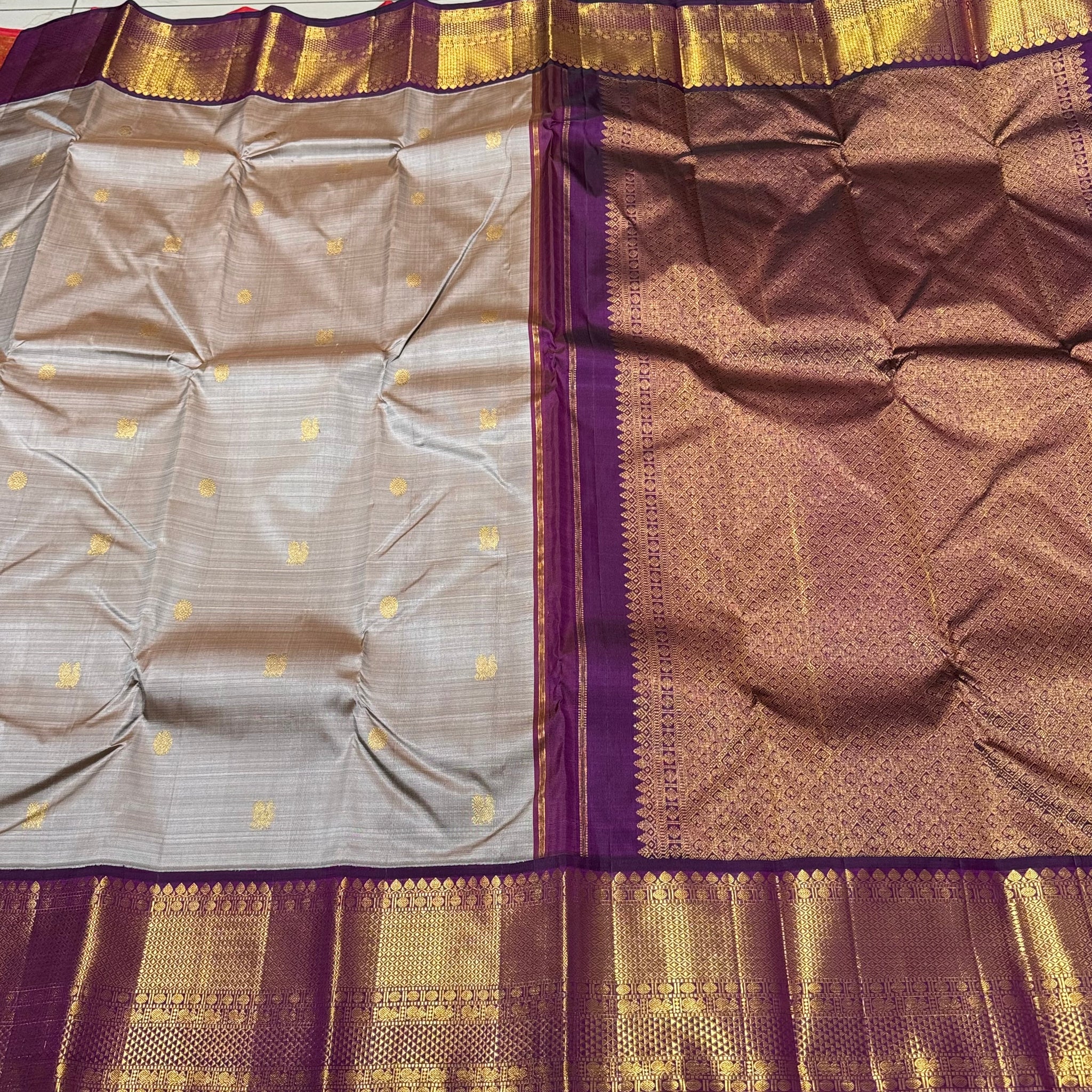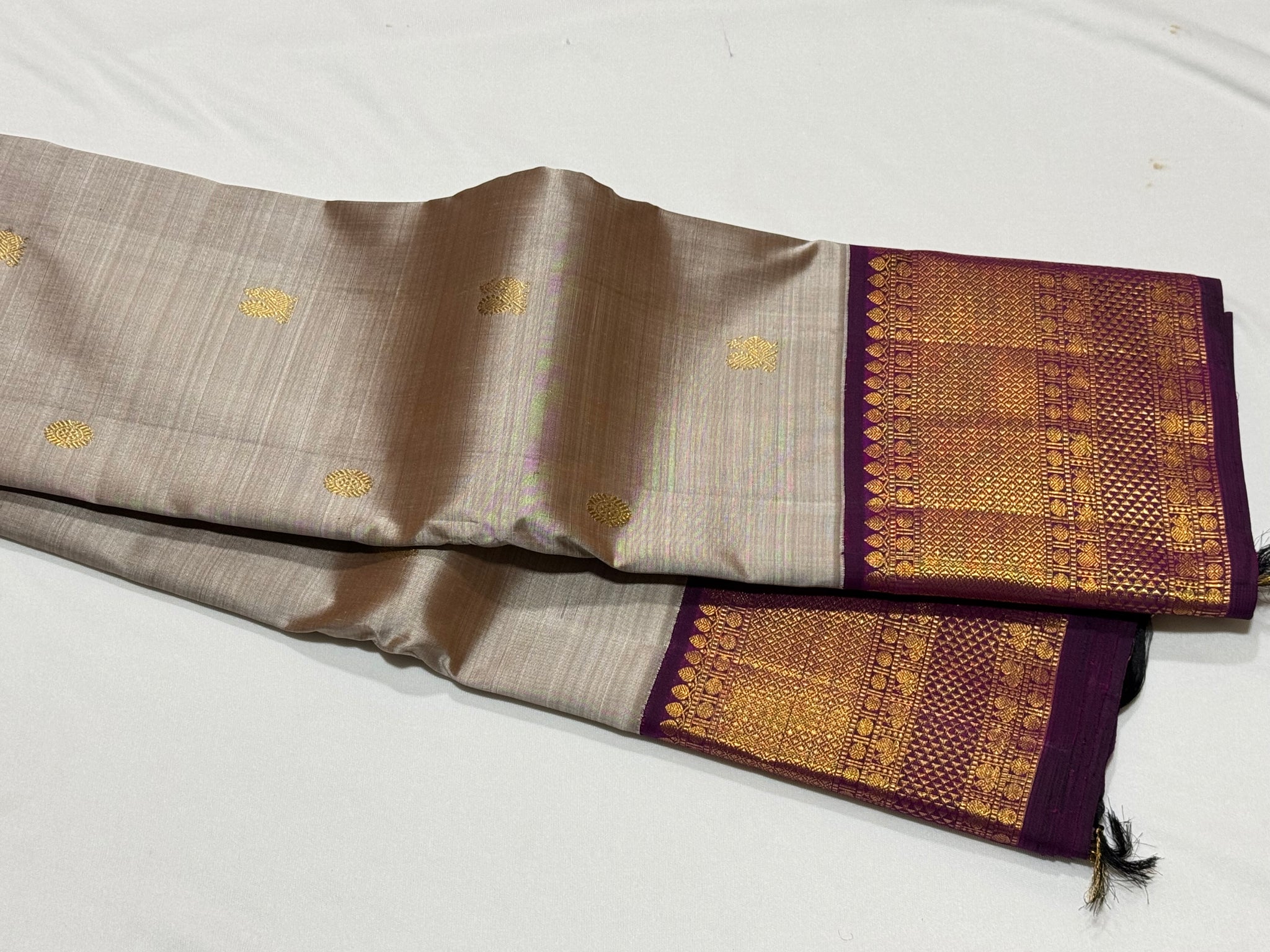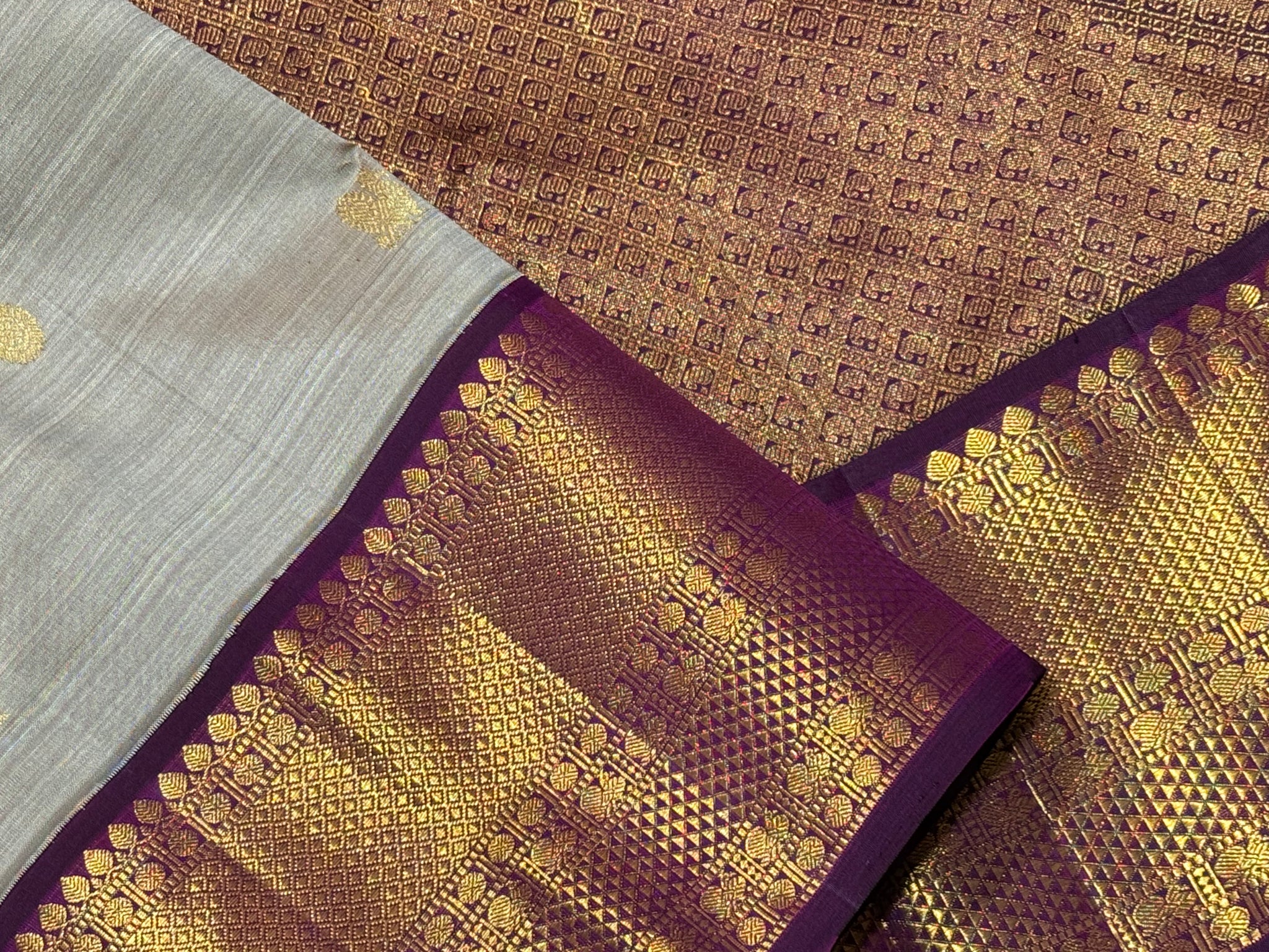Abirami with Deep Purple Buttas Korvai Handwoven Pure Jari Kanjivaram Silk Saree Beauty