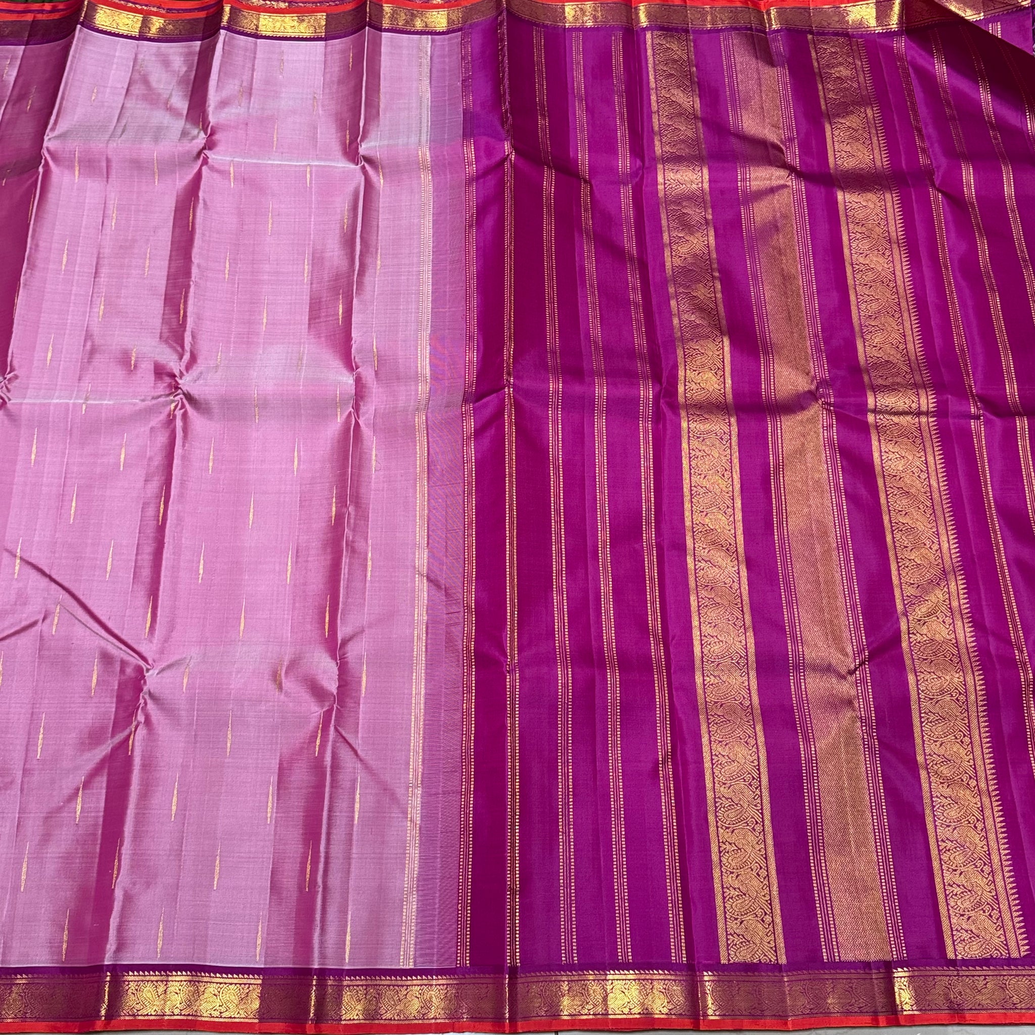 Lotus Pink with Vadamalli Purple Mallimoggu Buttas with Small borders Handwoven Pure Jari Kanjivaram Silk Saree Beauty