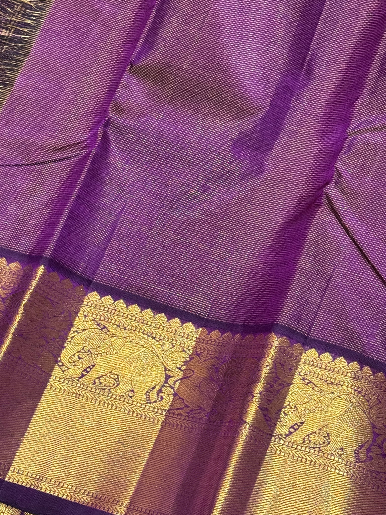 Light Ananda Blue with Deep Purple Buttas Vairaoosi Korvai Handwoven Pure Jari Kanjivaram Silk Saree Beauty