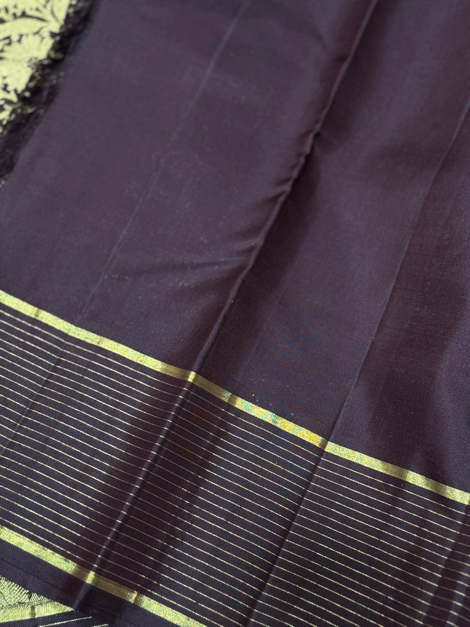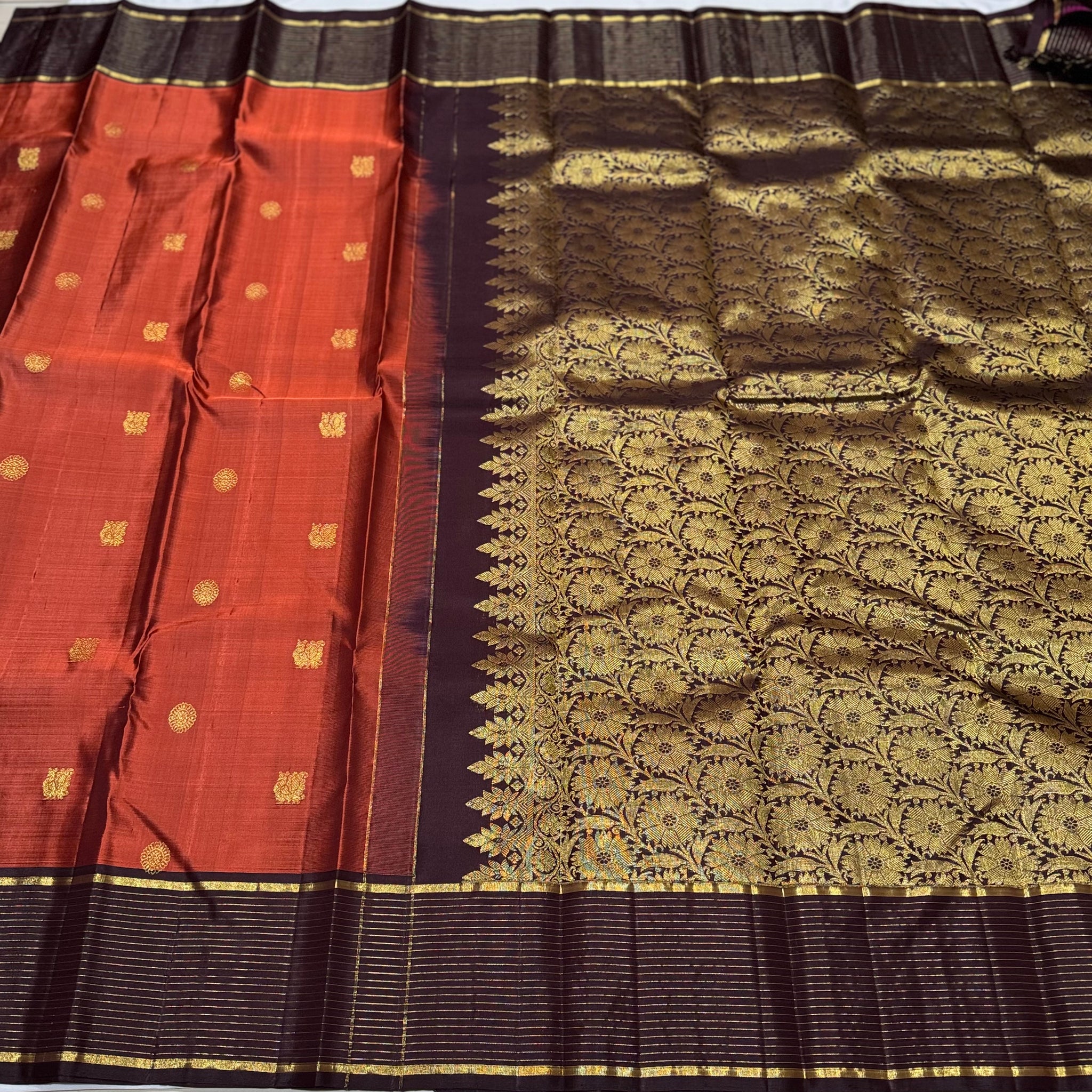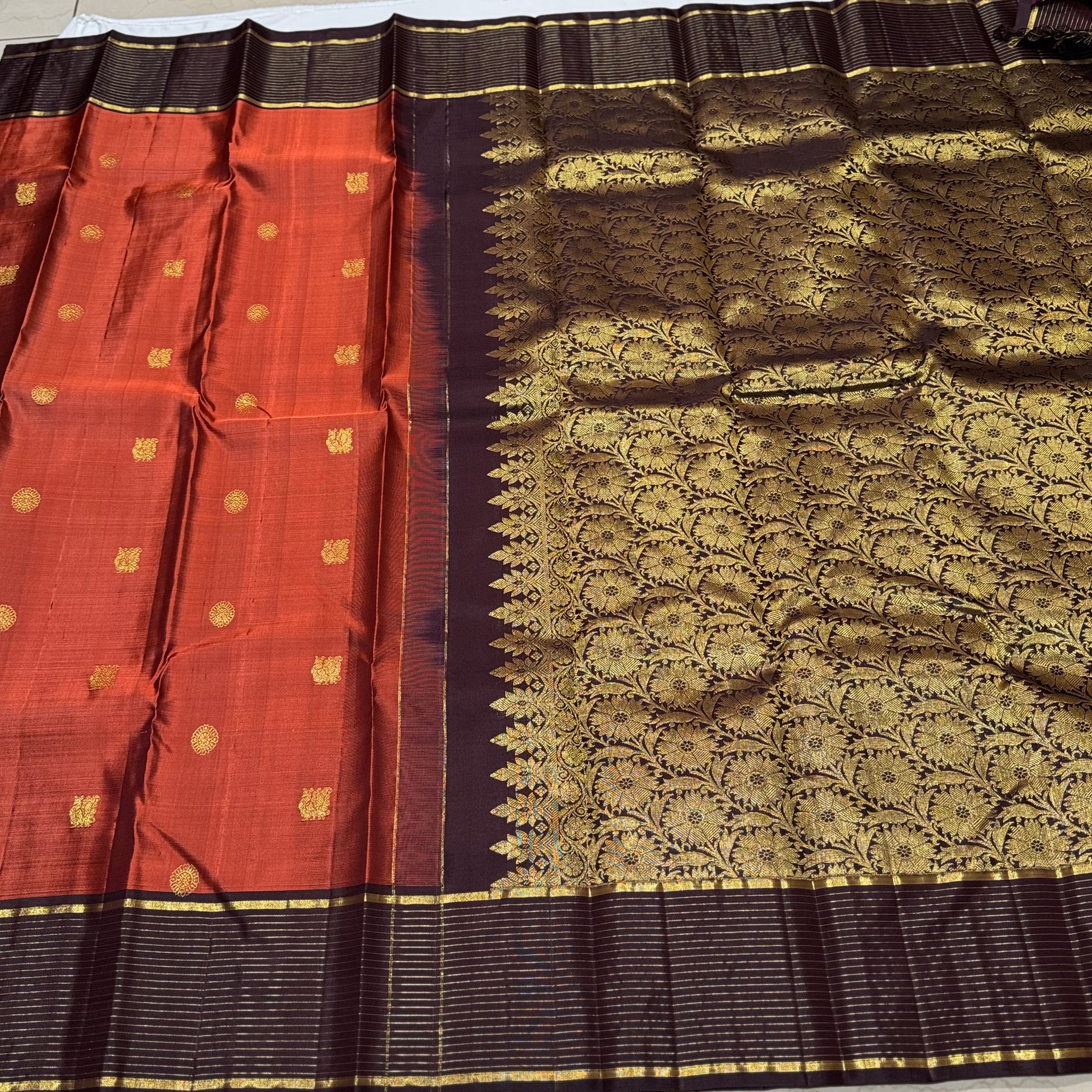 Vintage Combo- Rust with Coffee Brown Handwoven Pure Jari Kanjivaram Silk Saree with Jari Striped borders rich floral motifs woven pallu and contrast woven blouse beauty