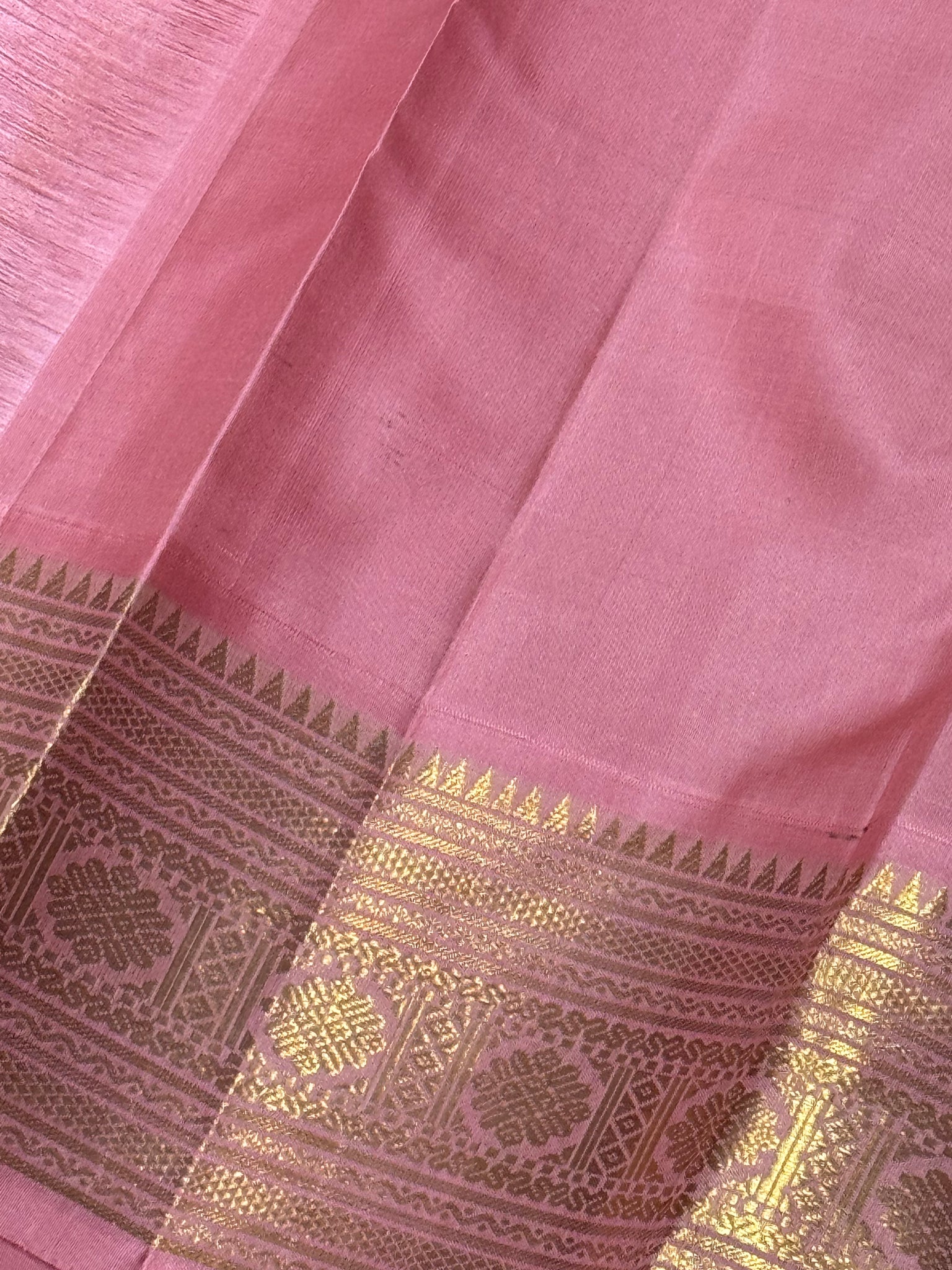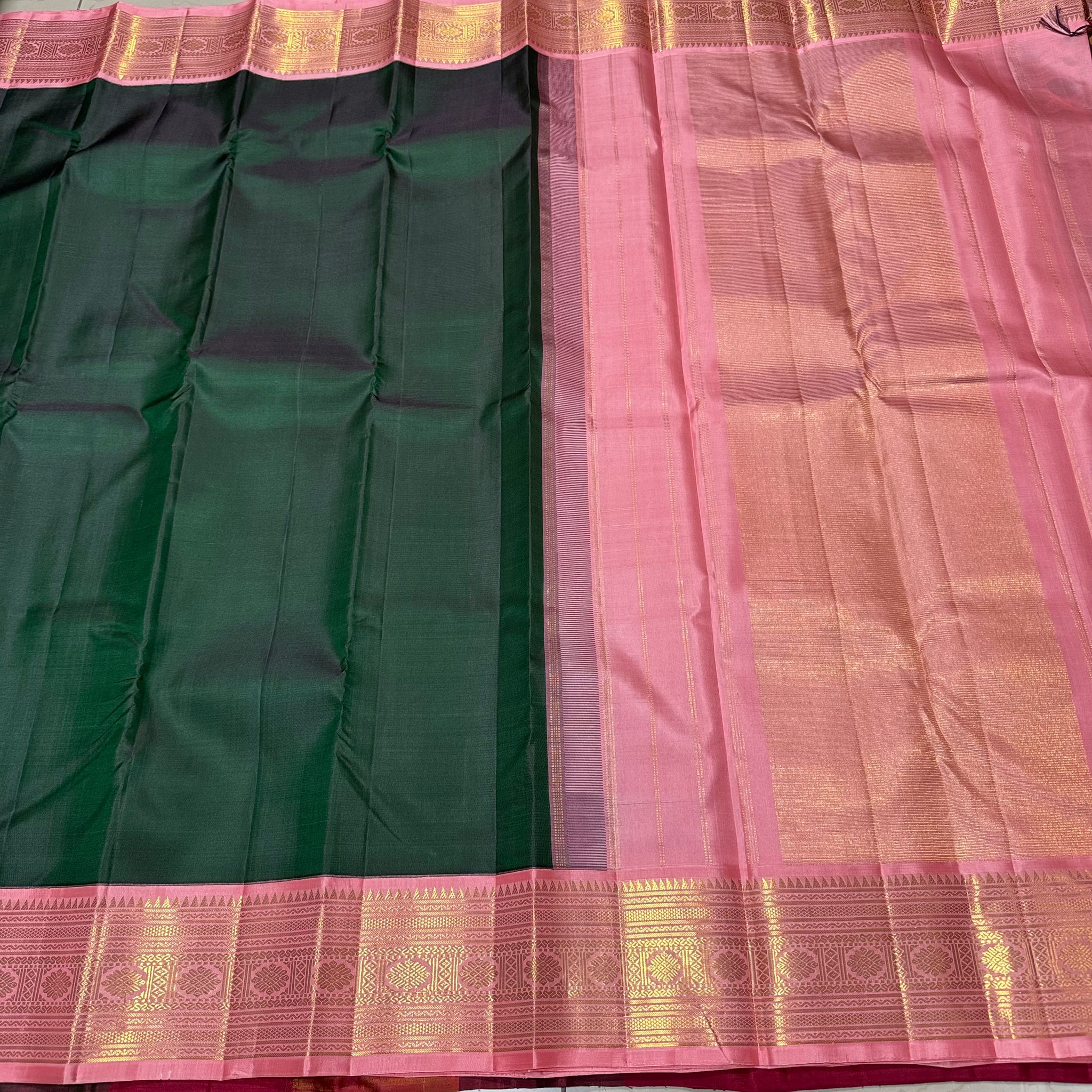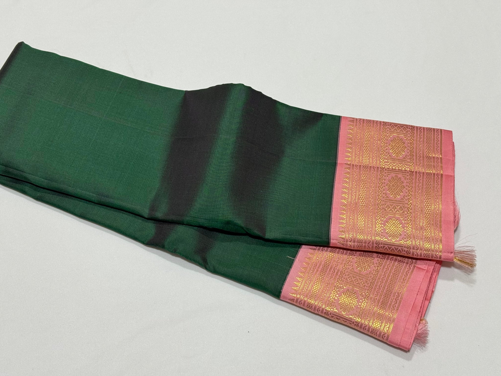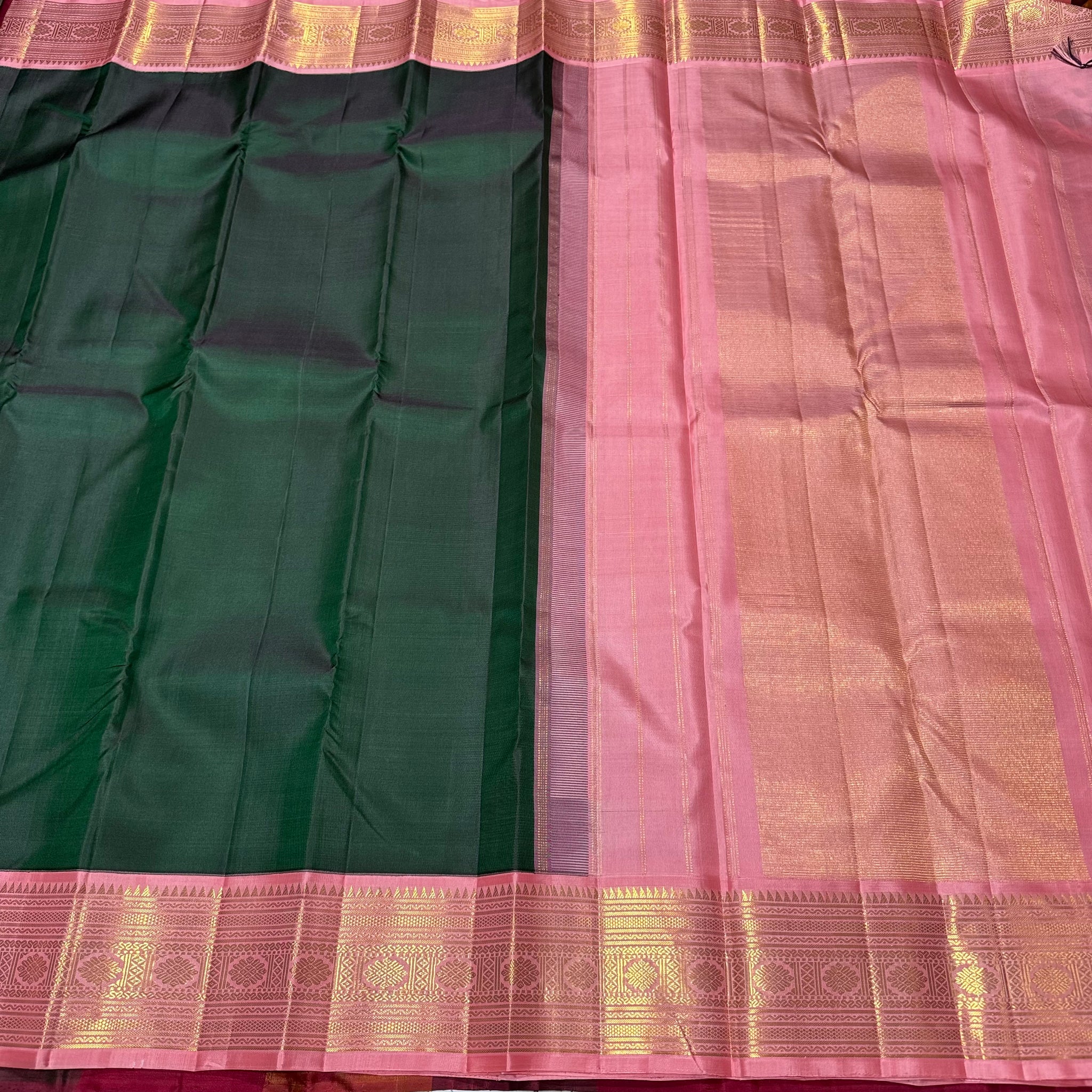 Vintage Recreation- Bottle Green with Salmon Pink Handwoven Kai Korvai Kanjivaram Silk Saree with rich woven borders pallu and contrast woven blouse